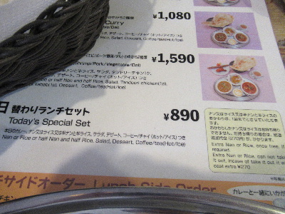 価格1,575円でメインディッシュのほかにライス、スープ、コーヒーがつく。
