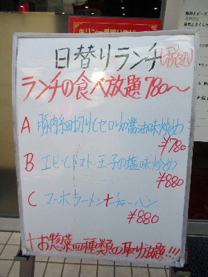 | 千葉「馥園 FUH EN」 千葉「一蘭・千葉駅C-one店」 千葉「ほてい家」 牛ロースステーキの誘惑 「ほてい家」のスペシャルハンバーグ 千葉「一風堂・千葉中央店」 千葉「えびすや」 千葉「一蘭・千葉駅C-one店」再び 千葉「えびすや」再び 千葉「牛兵衛草庵」 普通のラーメン-千葉「いっつも」 千葉「一風堂・千葉中央店」再び 千葉「馥園 FUH EN」再び 千葉「とん亭」 千葉「おじさんの台所 ままや新町店」 千葉「味噌屋せいべえ・千葉駅前店」 千葉「M's Kitchen」 千葉「麺屋黒船 千葉中央店」 千葉「とん亭」再び 千葉「馥園 FUH EN」の五目焼きそば |