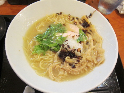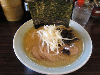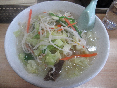 塩ラーメンはシンプルで、もやしとニラなどがトッピングで、