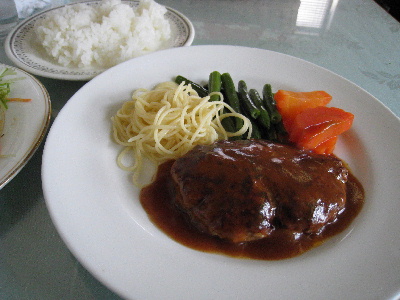 ハンバーグは少し柔らかいと思ったが、それでも十分に美味かった。