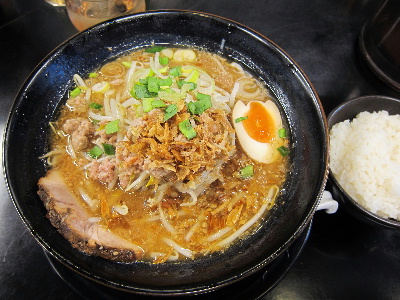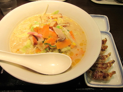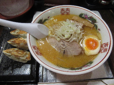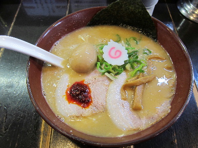 昼はここで煮玉子ラーメン890円とどうとんぼり餃子260円を喰う。