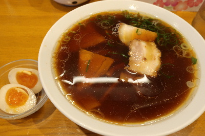醤油味のスープは濃厚で、中細のストレート麺がよく合う。