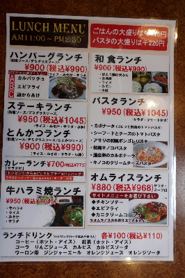 とんかつランチ、カレーランチ、牛ハラミ焼ランチなどもあった。