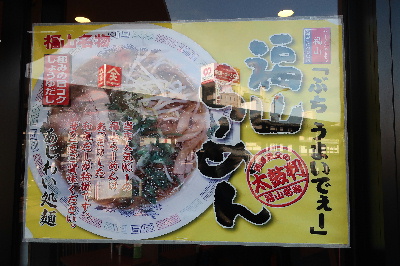 店の前には大きく「福山らーめん」のポスターが貼られていた。