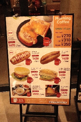 店の前の看板にはモーニングのメニューが掲示されていたが、