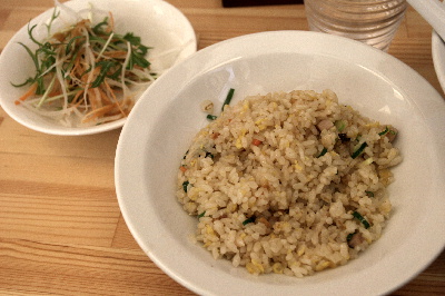 烏骨鶏塩ラーメンと半チャーハン、サラダがついてくる。