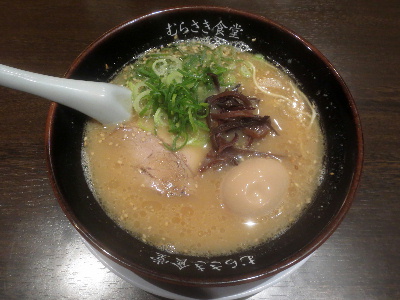 オーダーは「博多とんこつラーメン(黒)」の玉子入りラーメン800円。