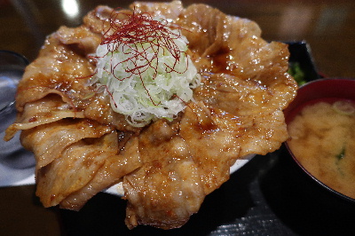 大盛はタレに潜らせた豚肉が花びらのように盛られていて、