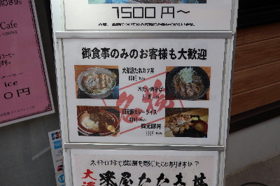 店の前の看板には「御食事のみのお客様も大歓迎」と出ていた。