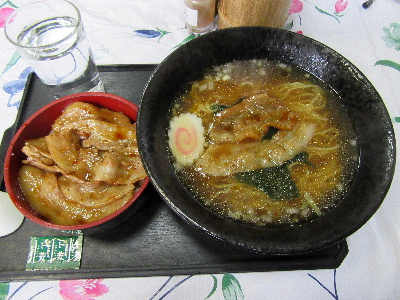 中華そば+半天丼、中華そば+半かつ丼セットメニューもあるが