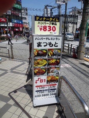 29日土曜日のホリデーパスの旅で、夕食に中野の「ハンバーグハウス」に行った。